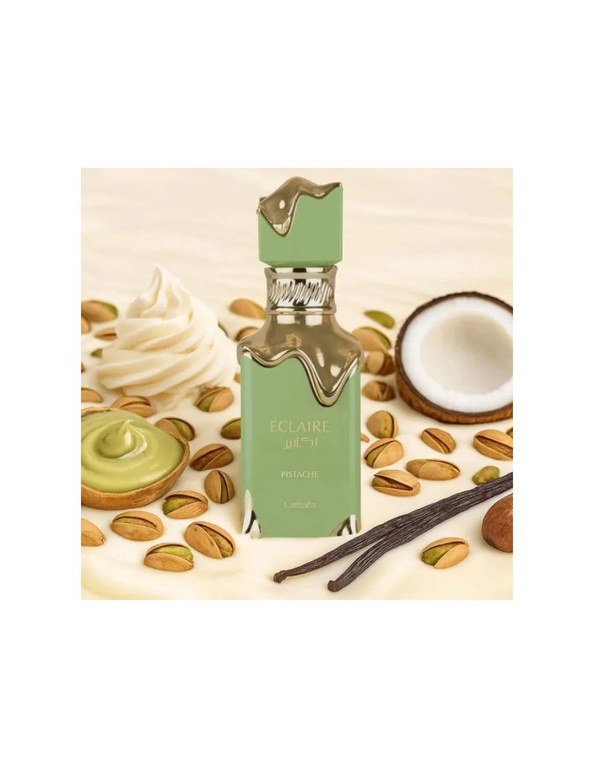 Lattafa Eclaire Pistache este un parfum gourmand elegant și rafinat, creat pentru cei care iubesc aromele dulci, cremoase și sofisticate. Inspirat de deserturile fine, acest parfum oferă o experiență olfactivă luxuriantă și memorabilă. Familia olfactivă: Gourmand – Oriental – Dulce Note de vârf: fistic și cremă de fistic, care aduc un început delicios, bogat și apetisant. Note de mijloc: cocos și frișcă de cacao, ce oferă o senzație catifelată, cremoasă și decadentă. Note de bază: lapte, vanilie și mosc, care conferă profunzime, persistență și un finish cald, reconfortant. Rezultatul este o apă de parfum dulce, sofisticată și irezistibilă, ideală pentru purtarea în momente speciale sau atunci când vrei să te răsfeți cu o aromă decadentă.
