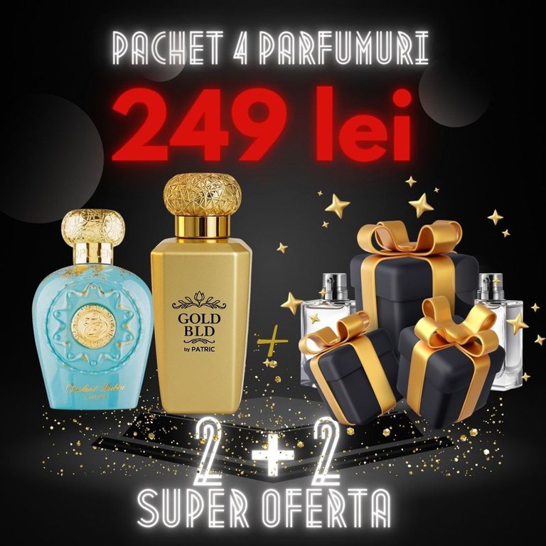 ✨ Pachet Super Promo 2 + 2 cadou ✨ Cumperi 2 Primesti 4 Primești 2 PARFUMURI de 100 ml Cadou Surpriză la achiziționarea acestui pachet exclusiv! ______________________________________________________________________________________ Lattafa Opulent Dubai Eau de Parfum, 100 ml – Descoperă noul parfum unisex din colecția emblematică Opulent a casei Lattafa, alăturându-se creațiilor distinse precum Opulent Musk, Opulent Oud și Opulent Red. Lattafa Opulent Dubai este o celebrare a eleganței arăbești, o fuziune splendidă între tradițiile ancestrale și pulsul vibrant al Dubaiului modern. Note Olfactive: Note de Vârf: Bergamotă și mandarină Note de Mijloc: Un simfonie florală de iasomie, trandafir și șofran, captând esența luxului și diversității culturale a Orientului Mijlociu. Note de Bază: Ambra, oud și vanilie, oferind o amprentă profundă și persistentă, semnătura unui parfum de neuitat. Lattafa Opulent Dubai este un tribut adus inovației și tradiției, o alegere inspirată pentru persoanele care doresc să exprime încredere și carismă prin esența lor. Remarcabil prin persistența îndelungată și sillage-ul impresionant, acest parfum este o piesă de rezistență în parfumeria de lux arabă. Gold Bld by Patric: Eleganță și Mister Descoperă Gold Bld by Patric, un parfum captivant care emană lux și sofisticare la fiecare pulverizare. Inspirat de iconicul L'interdit de la Givenchy , Gold Bld te invită să îți dezlănțui latura îndrăzneață și enigmatică, rămânând în același timp fidel stilului clasic și rafinat. Note Olfactive - Note de vârf: Bergamotă proaspătă și pere suculente se împletesc armonios, oferind o deschidere vibrantă și plină de viață. - Note de mijloc: Un buchet floral încântător de tuberoză, floare de portocal și iasomie Sambac adaugă un strat de eleganță și feminitate, evocând frumusețea senzuală a unei grădini în floare. - Note de bază: Patchouli bogat, vetiver pământiu și vanilie caldă creează un fundal sofisticat și memorabil, care lasă o impresie durabilă și profundă. Caracteristici Distinctive - Intensitate și longevitate: Formula sa concentrată asigură o persistență de lungă durată, însoțindu-te pe parcursul întregii zile sau serii. - Versatilitate: Ideal atât pentru ocaziile de zi, cât și pentru serile speciale, Gold Bld este un accesoriu olfactiv esențial pentru orice garderobă. - Sticla: Designul său elegant și luxos reflectă rafinamentul esenței pe care o adăpostește, devenind un obiect de artă pe măsuța ta de toaletă. Acest parfum este creat pentru femeia modernă, care nu se teme să îmbrățișeze contrastul dintre tradițional și contemporan. Este pentru cea care apreciază finețea detaliilor și care își dorește să lase o amprentă olfactivă inconfundabilă oriunde merge. Lasă-te purtată de farmecul irezistibil al Gold BLD by Patric și transformă fiecare zi într-o declarație de stil și eleganță. Acest parfum unic îți va dezvălui latura misterioasă și seducătoare, aducând un plus de strălucire și rafinament fiecărui moment.
