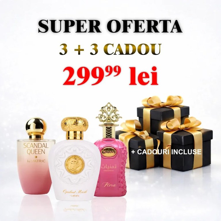 Opulent Musk + Scandal Queen + Thamniyat Flora + 3 parfumuri cadou https://www.xos.ro/reduceri/scentoparfum.ro/opulent-musk-scandal-queen-thamniyat-flora-3-parfumuri-cadou https://www.xos.ro/@@site-logo/logo.png Opulent Musk + Scandal Queen + Thamniyat Flora + 3 parfumuri cadou Opulent Musk + Scandal Queen + Thamniyat Flora + 3 parfumuri cadou Anunt actualizat: 04 Apr, 2026 08:58 Descriere Galerie imagini