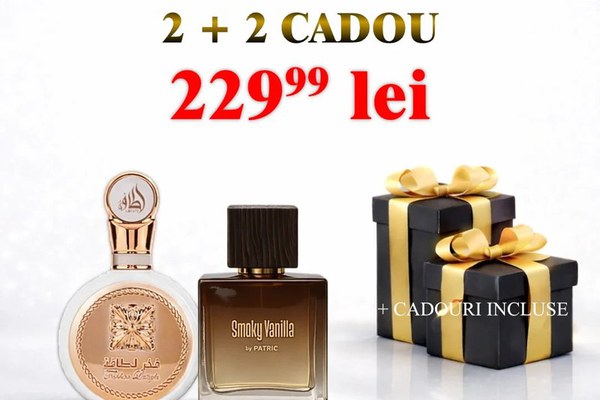 Pachet Lattafa Fakhar Woman+ Smoky Vanilla by Patric, unisex + 2 parfumuri cadou Un pachet atent ales pentru cei care apreciază arome elegante, moderne și ușor recognoscibile , într-o combinație echilibrată de rafinament și senzualitate. Două parfumuri premium, completate de două parfumuri cadou , pentru varietate și valoare maximă. ? Ce conține pachetul Conform experiențelor clienților, Fakhar Woman este asemănător cu L`Interdit de la Givenchy. Ingrediente Note de vârf : bergamotă, crin, rodie Note de mijloc : trandafir, iasomie, caprifoi, tuberoză, bujor, gardenie Note de bază : vanilie, lemn de santal, ambroxan, mosc alb Descoperă farmecul acestui captivant parfum, Cute Lady by Asten! Cute Lady de la Asten este un parfum fermecător care sporește feminitatea și dulceața femeii moderne. Notele sale proaspete și jucăușe evocă o imagine radiantă plină de energie. Bucurați-vă de fructele sale suculente, florile moi și o notă de senzualitate de durată. Descoperă aroma sofisticată și seducătoare a parfumului Smoky Vanilla by Patric , o esență unică care aduce în prim-plan o combinație rafinată de vanilie dulce și note fumurii. Inspirat de renumitul ** Tobacco Vanille **, acest parfum se remarcă prin eleganța sa clasică și farmecul atemporal. Compoziția parfumului: - Note de vârf : Un amestec vibrant de condimente calde și tonuri lemnoase, care te întâmpină cu o căldură reconfortantă și intrigantă. - Note de mijloc : O inimă bogată și cremoasă de vanilie naturală, completată de accente subtile de tutun dulce și balsamic, adăugând profunzime și intensitate parfumului. - Note de bază : O bază sofisticată de lemn de santal și boabe de tonka, care persistă pe piele și îți oferă o prezență magnetică, greu de uitat. Smoky Vanilla by Patric este parfumul ideal pentru cei care apreciază luxul și complexitatea unui parfum bine echilibrat, perfect pentru ocazii speciale sau pur și simplu pentru a-ți adăuga un plus de rafinament în fiecare zi. Fiecare pulverizare te va învălui într-o aură de mister și eleganță, lăsând o impresie memorabilă oriunde ai merge. 2 parfumuri CADOU – ideale pentru a descoperi arome noi sau pentru a fi oferite mai departe ? Total: 4 parfumuri într-un pachet avantajos