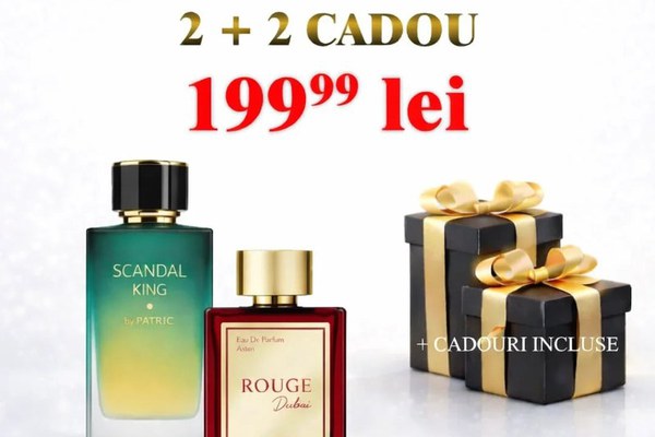 ✨ Pachet Super Promo 2 + 2 cadou ✨ Cumperi 2 Primesti 4 Primești 2 PARFUMURI de 100 ml Cadou Surpriză la achiziționarea acestui pachet exclusiv! ______________________________________________________________________________________ Rouge Dubai este un parfum intens și enigmatic care trezește simțurile prin combinația sa seducătoare de note orientale și lemnoase. Acest parfum captivant creeaza o experienta olfactiva plina de pasiune si mister. În notele de vârf, Rouge Dubai se dezvăluie cu o explozie de condimente exotice și dulci. Aceste note de deschidere captivează și stârnesc instantaneu curiozitatea, pregătind scena pentru ceea ce urmează. În inima parfumului, se desfășoară un amestec bogat de flori exotice și senzuale. Aceste note florale adaugă o dimensiune fermecătoare și seducătoare compoziției, creând un traseu magnetic și învăluitor. Notele de bază ale Rouge Dubai sunt profunde și sofisticate. Lemnurile prețioase și moscul se îmbină într-o simfonie captivantă, creând o bază de lungă durată și captivantă. Aceste note lemnoase oferă o notă de căldură și eleganță, lăsând o urmă de neuitat și misterios. Rouge Dubai este un parfum care întruchipează pasiunea și misterul. Perfect pentru cei care doresc să iasă în evidență și să lase o impresie de durată, acest parfum te învăluie într-o aură seducătoare și enigmatică. Cu fiecare aplicare, dezvăluie esența seducției de foc, evocând un sentiment de putere și magnetism irezistibil Note de varf: migdala amara, sofran Note de mijloc: iasomie egipteana, cedru Note de baza: note lemnoase, mosc ___________________________________________________________ Scandal King by Patric Pășește într-o lume care te încurajează să-ți continui drumul sub un cer albastru închis acoperit de stele... Compoziția magnifică, care se deschide cu tonuri de citrice strălucitoare și note aromate, împodobite cu boabe de tonka și caramel, toate oferind un echilibru unic impreuna cu căldura aurie a chihlimbarului din bază. Nota de varf: salvie, mandarina, portocala, lavanda Notă de inimă: caramel, boabe de tonka, iasomie Note de baza: ambra, paciuli, lemnos