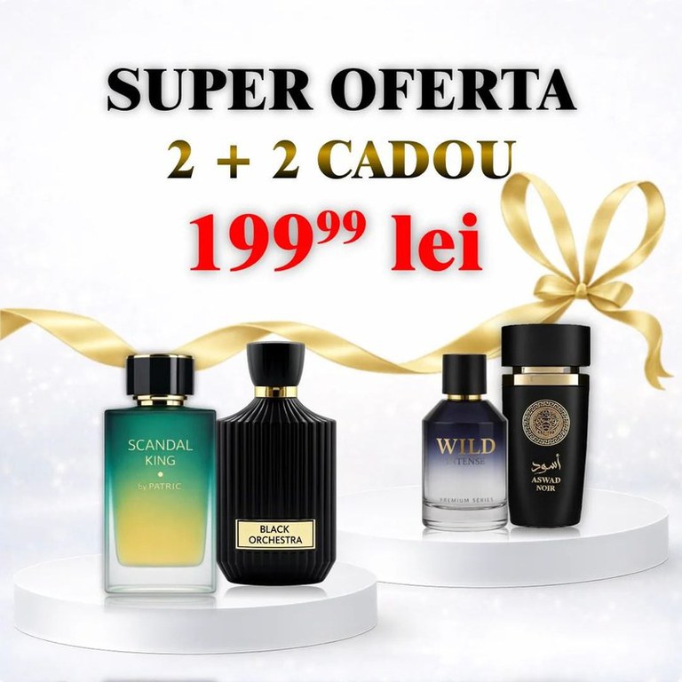 Un set creat pentru bărbații care vor parfumuri puternice, persistente și cu personalitate. Acest pachet conține 4 parfumuri bestseller, potrivite atât pentru zi, cât și pentru seară, cu arome dulci, lemnoase, orientale și intense. Fiecare parfum din set oferă o experiență diferită – de la note dulci și seducătoare, la arome lemnoase elegante și parfumuri orientale misterioase. Este setul ideal pentru bărbatul care vrea să iasă în evidență și să lase o impresie memorabilă. Pachetul conține: Scandal King – dulce, condimentat, puternic și seducător Black Orchestra – elegant, intens, cu note dulci și lemnoase Wild Intense – fresh-lemnos, masculin și energic Aswad Noir – oriental, misterios, intens și persistent De ce să alegi acest set: 4 parfumuri diferite într-un singur pachet Persistență foarte bună Potrivite pentru zi și seară Ideal pentru cadou Parfumuri apreciate și foarte cumpărate Raport calitate-preț excelent Tip produs: Apă de parfum Număr bucăți: 4 Cantitate: 100 ml / parfum Pentru: Bărbați Tip arome: Dulce, Lemnos, Oriental, Fresh