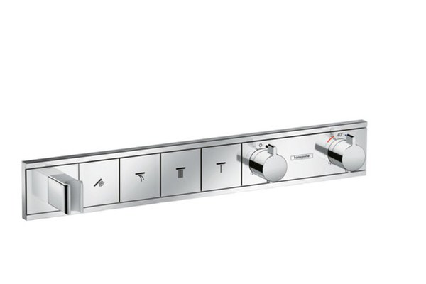 Brand:Hansgrohe Colectia:RainSelect Cod EAN:4059625033968 Tehnologie:Termostatata Numar consumatori:4 Material:Alama sanitara Dimensiuni:598x90mm Culoare:Crom Specificatii:Pentru patru consumatori Folosire concomitenta a mai multor consumatori Butoane Select on/off pentru consumatori Cartus termostatat Presiune de operare min - max: 1 - 10 bar Oprire de siguranta la 40° C Limitator de temperatura ajustabil Valva anti-retur Tehnologii:16404 21497 Observatii:Atentie! Produsul reprezinta corpul exterior (aparent)! Pentru functionare necesita corp incastrat dedicat - care se achizitioneaza separat (vezi produse recomandate). Garantie:5 ani