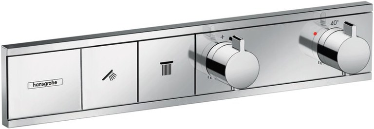 Brand:Hansgrohe Colectia:RainSelect Cod EAN:4059625201350 Tehnologie:Termostatata Numar consumatori:2 Material:Alama sanitara Dimensiuni:456 x 90 mm Culoare:Crom Specificatii:Pentru doi consumatori Folosire concomitenta a mai multor consumatori Butoane Select on/off pentru consumatori Debit maxim la 3 bar: 26 l/min Cartus termostatat Presiune de operare min - max: 1 - 10 bar Oprire de siguranta la 40° C Limitator de temperatura ajustabil Valva anti-retur Tehnologii:16404 21497 Observatii:Atentie! Produsul reprezinta corpul exterior (aparent)! Pentru functionare necesita corp incastrat dedicat - care se achizitioneaza separat (vezi produse recomandate). Garantie:5 ani