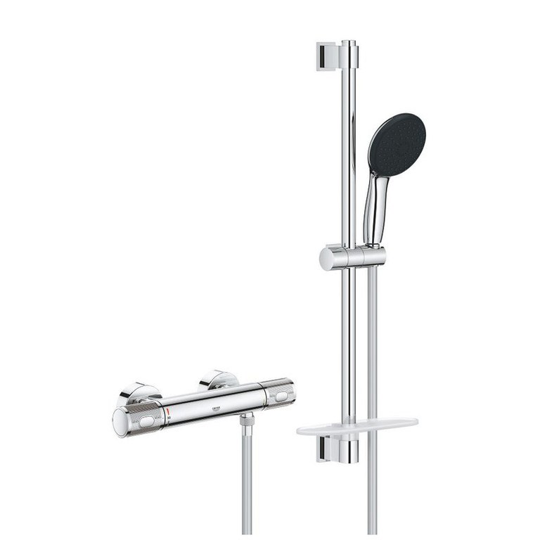 Baterie dus termostatata Grohe Precision Feel cu set de dus Vitalio Start 110 cu bara 60cm crom