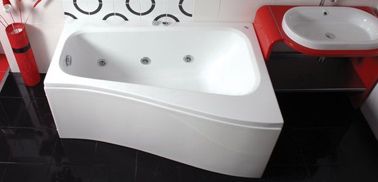 Cada baie asimetrica Belform Senso 150x100x70cm acril complet echipata cu picioare panouri si sifon orientare stanga