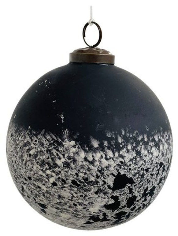 Decoratiune brad Deko Senso glob 12cm sticla negru cu patina alba