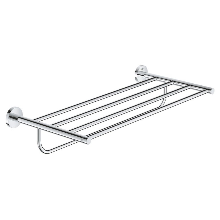Brand:Grohe Colectia:Essentials Cod EAN:4005176327988 Tip:Etajera portprosop Material:Metal Dimensiuni:604 mm Culoare:Crom Specificatii:material: metal 604 mm (lungime utilă 550 mm) fixare de perete ascunsă finisaj GROHE Long-Life suitable for screwing (including screws and dowels) Garantie:5 ani