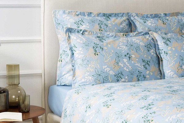 Lenjerie de pat Jardin Secret Embellie 200x200cm cu 2 fete de perna 50x75cm Albastru Arctique