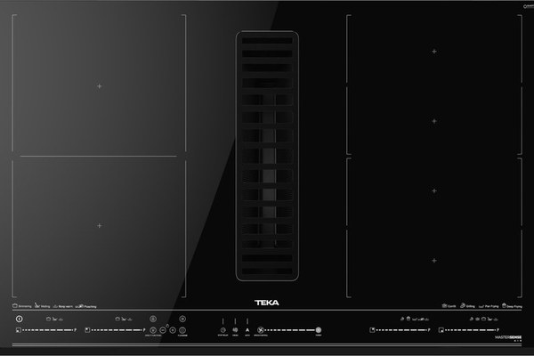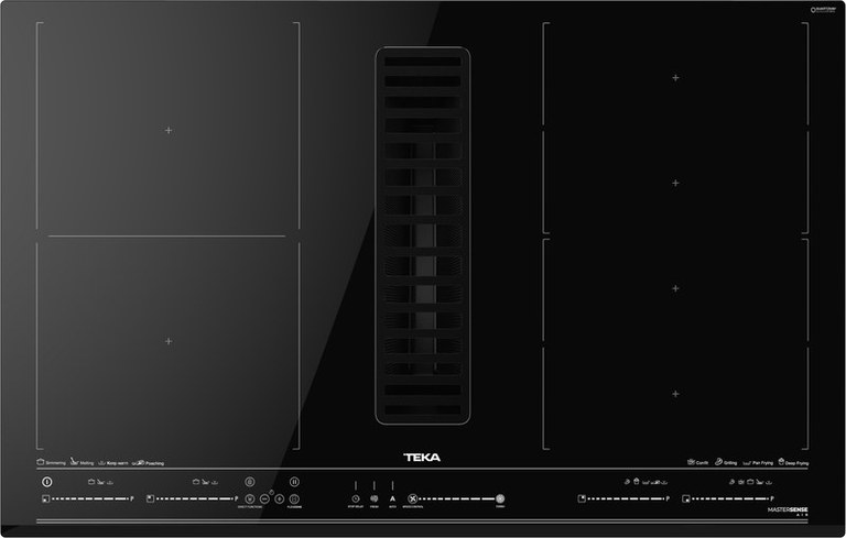 Plita cu inductie incorporabila cu hota integrata Teka AFF 87601 MST BK 80cm 4 zone max 301mc/h Fresh AIR design Cristal;