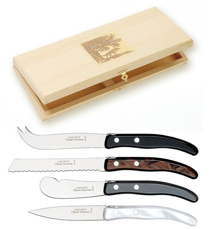 Set cutite mic dejun Claude Dozorme Berlingot 4P maner rasina mix gri - maro 4 piese cutie lemn fag