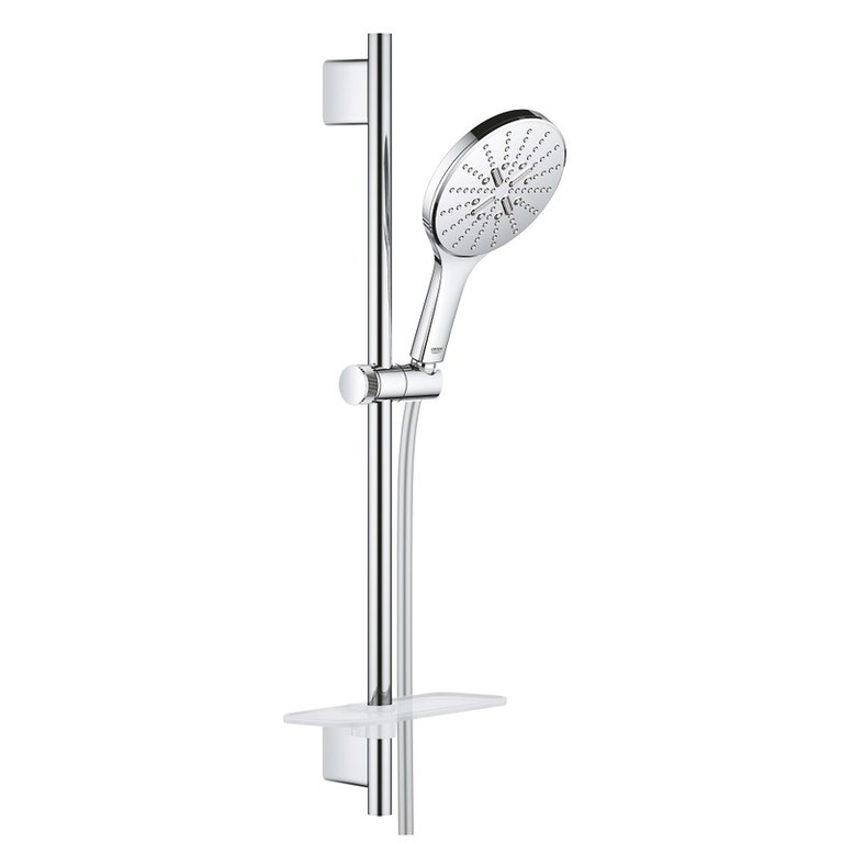 Set de dus Grohe Rainshower SmartActive 150 Cube cu bara 60cm furtun 175cm polita si para de dus cu 3 jeturi crom