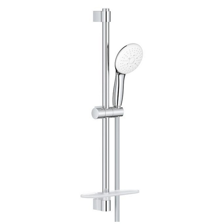Brand:Grohe Colectia:Tempesta Cod EAN:4005176680755 Tip:Set cu bara dus Material:Metal-plastic Dimensiuni:600mm Culoare:Crom Specificatii:compus din: para de dus Tempesta 110 (28 419) bară de duş 600 mm (27 523) furtun de duş Relexaflex de 1750 mm 1/2 x 1/2 (28 154) savoniera GROHE EasyReach (26 770) GROHE Water Saving tehnologie pentru reducerea consumului de apă GROHE SmartSwitch pulverizare perfectă cu tehnologia GROHE DreamSpray suprafaţă GROHE Long-Life GROHE FastFixation sistem anti-calcar SpeedClean Inner WaterGuide protecție de silicon Shockproof ce previne deteriorarea cauzată de căderea duşului debit maxim (at 3 bar): 7.4 l/min presiunea minimă recomandată 1.0 bar compatibil cu boilere professional edition Garantie:5 ani