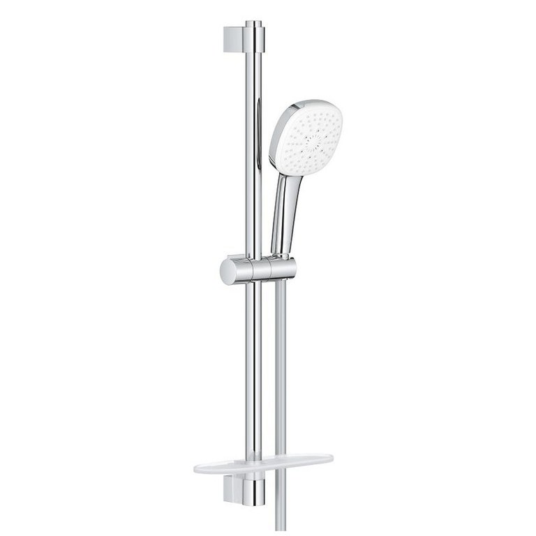 Set de dus Grohe Tempesta Cube 110 cu bara 60cm furtun 175cm polita si para de dus cu 3 jeturi crom