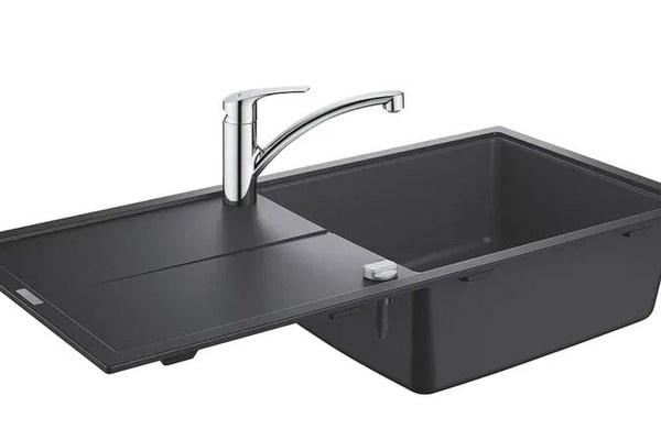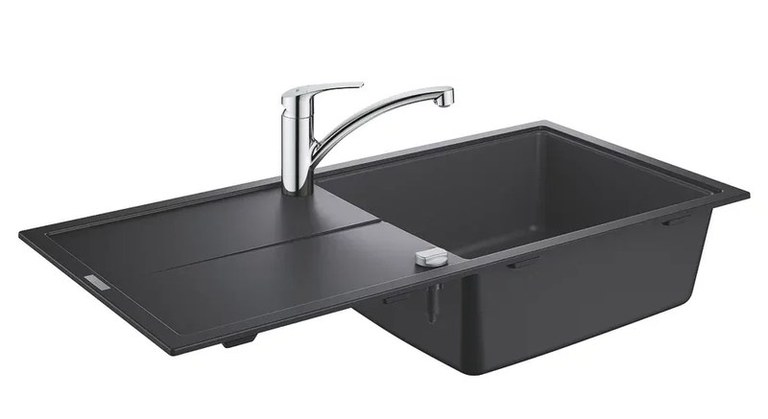 Set Grohe K400 chiuveta compozit 60-C 100/50 1.0 rev 1000x500mm granite black si baterie Via crom