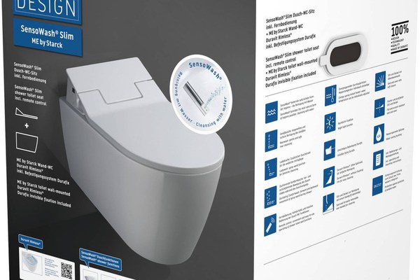 Set vas WC suspendat Duravit ME by Stark si capac slim SensoWash cu functie de bideu