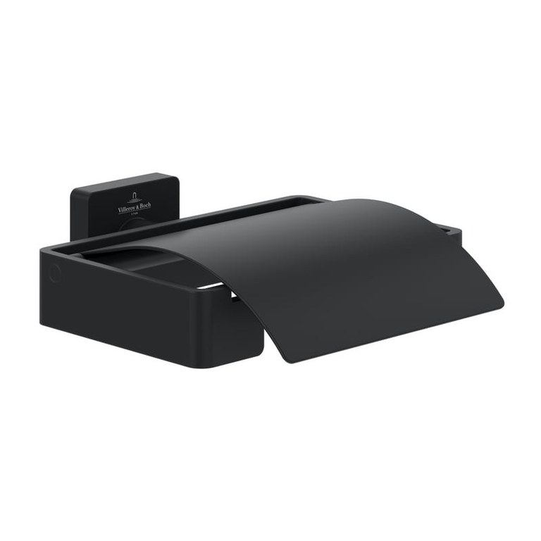 Suport hartie igienica cu aparatoare Villeroy & Boch Elements Striking negru mat