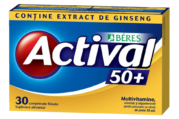 Substantele active din Actival 50+ contribuie la asigurarea necesarului de vitamine, minerale si oligoelemente, la mentinerea nivelului de performanta si la functionarea normala a sistemului imunitar la persoanele trecute de 50 de ani.