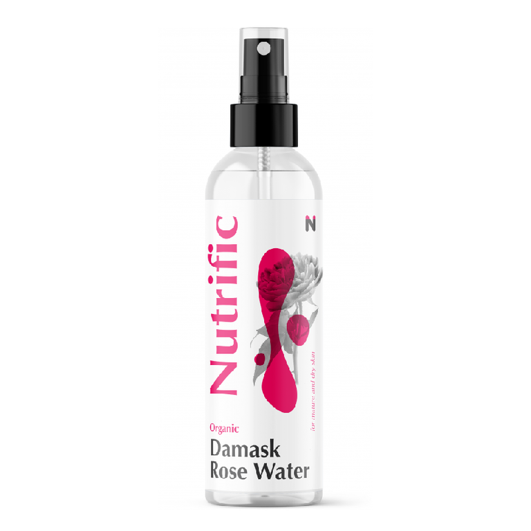 Apa organică de trandafiri de Damasc (Rosa Damascena) este un produs rafinat, un veritabil elixir pentru frumusețe, obținut prin distilarea delicată a petalelor de trandafir Rosa Damascena, un soi recunoscut pentru proprietățile sale excepționale și aroma încântătoare. Prin procesul de obținere a apei organice de trandafiri de Damasc de la Nutrific sunt păstrate intacte toate beneficiile naturale ale trandafirilor, rezultând un produs Nutrific pur și bogat în nutrienți, ideal pentru îngrijirea atentă a pielii.