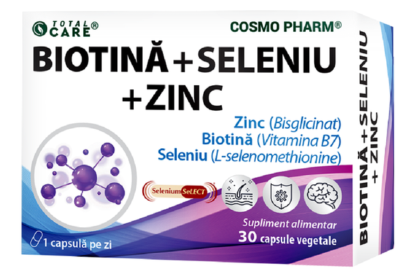 Biotina + Seleniu + Zinc, 30 capsule vegetale, Cosmo Pharm