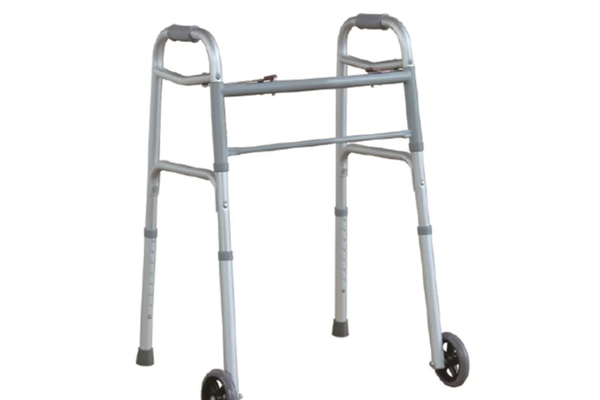 Cadru cu rotile - cadru metalic de mers, usor, durabil, cu finisaj anodizat. Aluminiul anodizat este durabil in timp, permite curatarea usoara si ofera stabilitate culorii vreme indelungata. Acest cadru ortopedic de mers se poate regla in functie de inaltimea utilizatorului – cadru cu rotile reglabil.