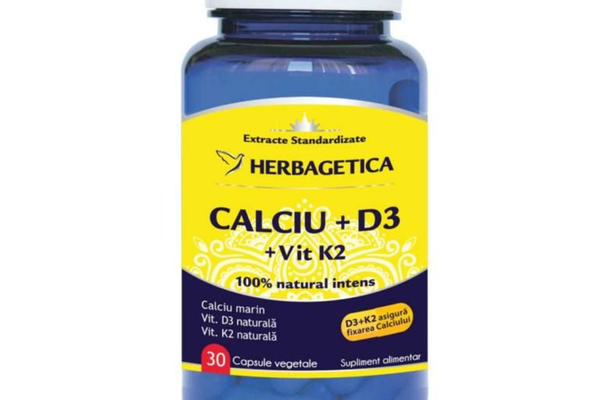 Calciu + D3 + Vitamina K2, 30 capsule, Herbagetica