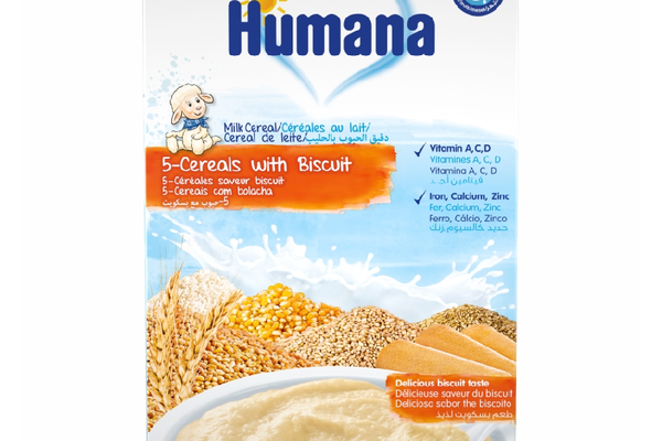 Cereale cu lapte, cu 5 cereale si biscuiti, 200 gr, Humana