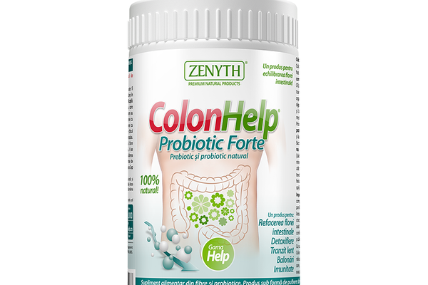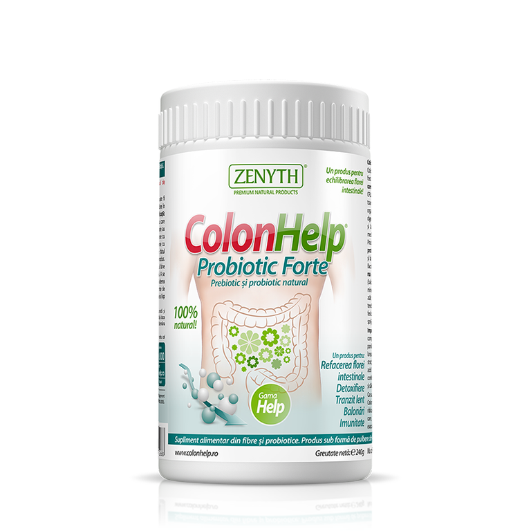 ColonHelp Probiotic Forte este un supliment alimentar 100% natural, o asociere inedită de prebiotice și probiotice. Acțiunii detoxifiante a fibrelor de in și psyllium din ColonHelp clasic i se adaugă refacerea florei intestinale atât prin componenta probiotică adăugată, cât și prin stimularea producției interne de bacterii sanogene din colon (componenta prebiotică – inulină). ColonHelp Probiotic Forte conține 20% inulină, extrasă din rădăcină de cicoare. Inulina este o fibră solubilă cu efect prebiotic, care constituie un suport excelent pentru înmulțirea probioticelor în colon.