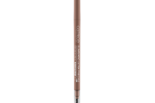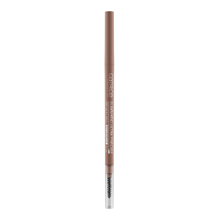 Vârful subțire al creionului pentru sprâncene rezistent la apă, Catrice Slim'Matic, permite trasarea cu precizie a contururilor și a firelor individuale, arată natural și este rezistent la apă și la transpirație.
