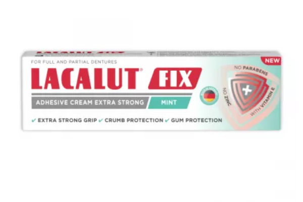LACALUT® FIX cremă adezivă protejează gingiile și oferă o aderență extra puternică pentru un confort de lungă durată.
