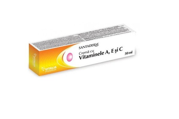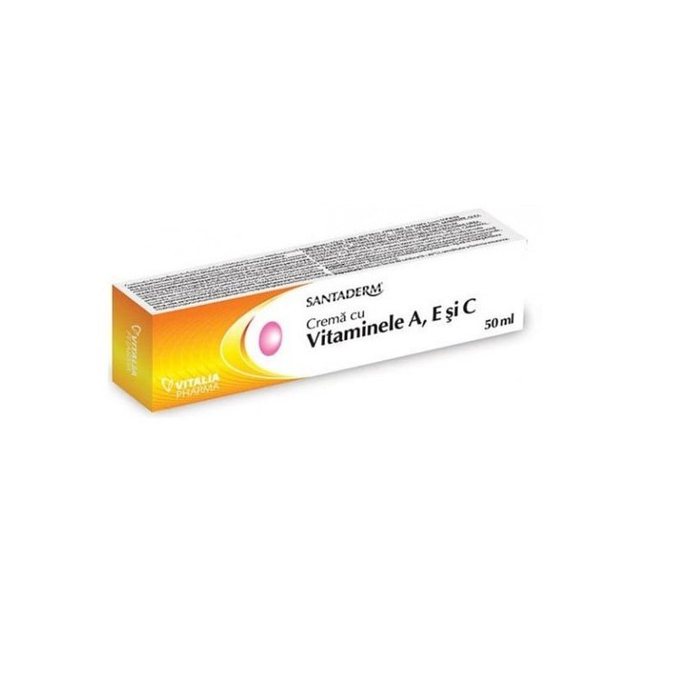 Crema cu vitaminele A, E si C Santaderm® este potrivita pielii uscate si descuamate, care are nevoie de hidratate, hranire si revitalizare. Este o crema puternic hidratanta, extrem de eficienta pentru ingrijirea zilnica a fetei, mainilor si a corpului. Are o formula special conceputa pentru a asigura refacerea elasticitatii pielii, a Ph-ului acesteia, redandu-i aspectul sanatos.