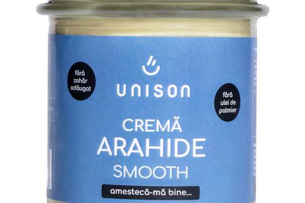 Cremă de arahide natural Smooth. Produs prin coacerea ușoară a arahidelor (light roast) pentru a păstra un gust unic și o consistenţă smooth.