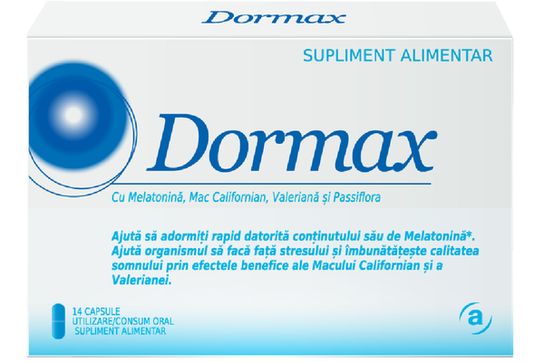Dormax este un supliment alimentar recomandat persoanelor care sufera de insomnii sau tulburari de somn cauzate de schimbarile de fus orar, stres sau depresie. Produsul inovator reuseste sa combata eficient starile de insomnie, stres si anxietate, favorizand relaxarea si odihna de calitate.