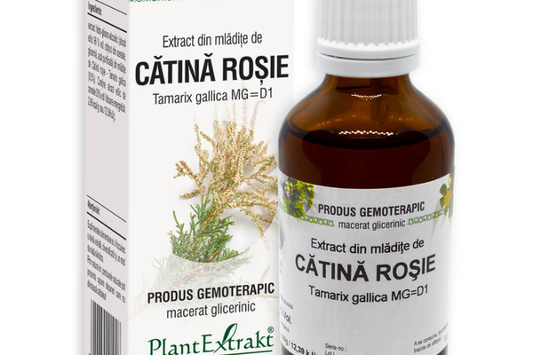 Extractul gemoterapic este obtinut din mladite proaspete de Catina rosie (Tamarix gallica), prelucrate conform retetei farmaceutice de macerat glicerinic.