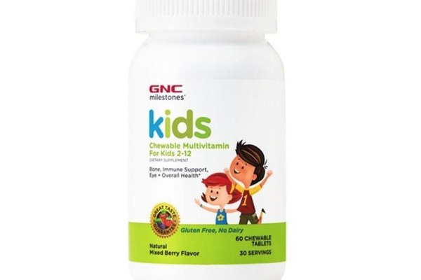 GNC Milestones®Kids tablete masticabile cu multivitamine pentru copii sustine si mentine in parametrii normali sistemul imunitar, productia de energie si starea de sanatate generala.Vitamina C si B-6 ofera ajutor sistemului imunitar al organismului.Vitamina D ajuta la dezvoltarea corespunzatoare a sistemului osos.Vitamina A, E si C ajuta la mentinerea sanatatii ochilor, iar complexul de vitamine B favorizeaza productia de energie necesara unui copil in crestere.