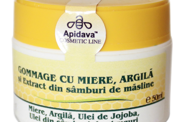 Gommage cu miere, argila si extract din samburi de masline, 50 ml, Apidava