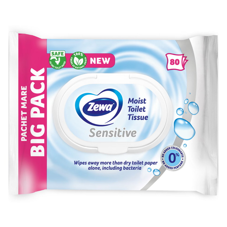 Hartie igienica umeda, Sensitive, 80 bucati, Zewa