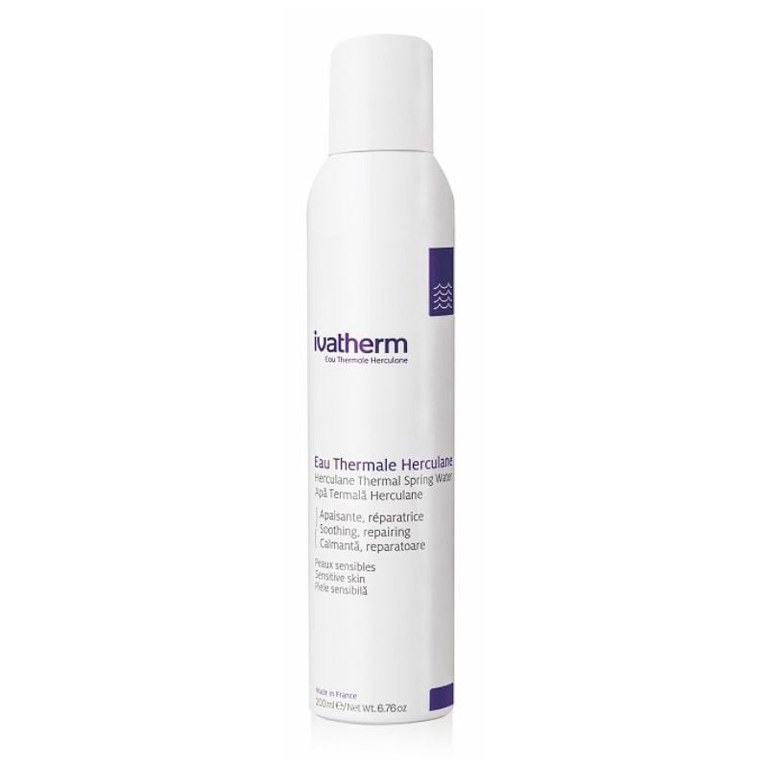 Apa termala Herculane spray, 200 ml, Ivatherm: calmeaza si protejeaza pieleaApa Termala Herculane Spray, 200 ml, Ivatherm este un produs premium de ingrijire a pielii, care valorifica puterea apei termale Herculane. Apa termala Herculane este recunoscuta pentru puritatea si proprietatile sale terapeutice. In plus, este bogata in minerale si oligoelemente esentiale, ingrediente ce ofera hidratare profunda si de lunga durata. Totodata, Apa termala Herculane spray calmeaza iritatiile si protejeaza pielea impotriva radicalilor liberi. Comanda online pe springfarma.com si beneficiezi de preturi avantajoase.Cine poate folosi Apa termala Herculane spray, 200 ml, IvathermApa termala Herculane spray este potrivita pentru toate tipurile de piele, inclusiv pentru cea sensibila sau iritata. Datorita proprietatilor sale calmante si regenerante, poate fi utilizata de adulti, copii si chiar de bebelusi. Apa termala poate fi folosita inclusiv pe pielea uscata sau predispusa la roseata. Mai mult, apa termala poate fi utilizata zilnic pentru a fixa machiajul sau pentru a calma pielea dupa expunerea la soare, dupa ras sau epilare.