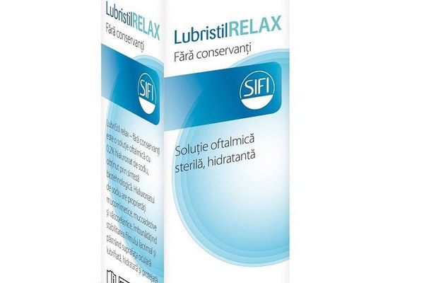 Lubristil Relax contine hialuronat de sodiu 0.15%, un ingredient recunoscut clinic pentru proprietatile sale de a hidrata intens si a lubrifia, fiind astfel un remediu eficient pentru ochi uscati, obositi si iritati. De asemenea, produsul ofera un confort de lunga durata persoanelor care poarta lentile de contact. Lubristil Relax este potrivit in toate cazurile de disconfort ocular provocat de factori precum utilizarea indelungata a computerului, lumina puternica, praf, polen, poluarea aerului sau aer conditionat. Lubristil Relax x 10 ml sol. oft., mod de administrare Se aplica 1-2 picaturi de Lubristil Relax in sacul conjunctival, iar doza se poate repeta de patru ori pe zi.