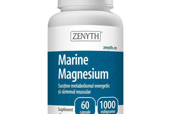 Marine Magnesium de la Zenyth este un supliment 100% natural recomandat in special in caz de deficit de magneziu. Contribuie la buna functionare a sistemului muscular si osos, dar si a sistemului nervos. Este eficient in reducerea simptomelor de oboseala psihica si extenuare si sprijina sistemul cardiovascular prin mentinerea sanatatii inimii. Totodata, Marine Magnesium de la Zenyth ajuta la transportul nutrientilor in organism si regleaza nivelul de zahar din sange. O capsula de Marine Magnesium contine o concentratie de 330 mg magneziu.