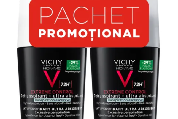 Pachet Deodorant roll-on antiperspirant pentru barbati Control Extrem 72H, 50 ml + 50 ml, Vichy