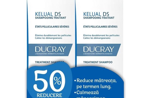 Pachet Sampon tratament dermatocosmetic anti-matreata Kelual DS, 100 ml + 100 ml, Ducray