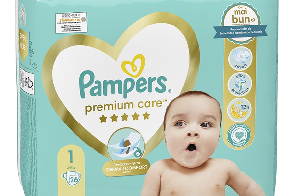 Pampers Scutece Premium Care Junior Marimea 1, 2-5kg, 26 bucati