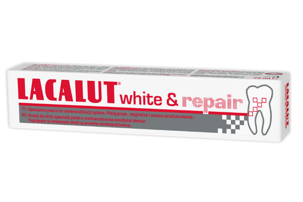 Lacalut White & Repair este o pasta de dinti medicinal care are rolul de a ingriji dintii si de a preveni demineralizarea acestora.