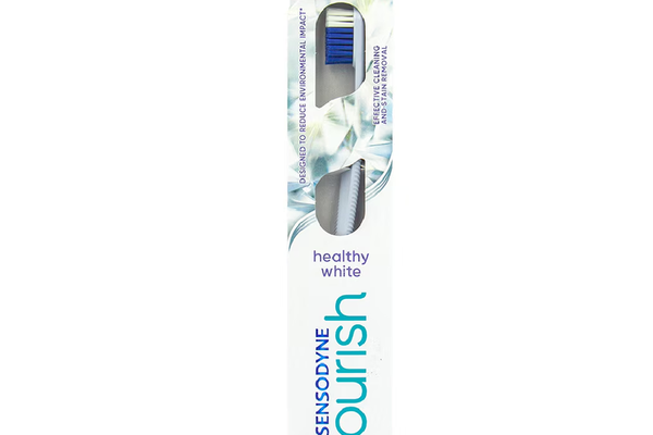 Periuța de dinți Sensodyne Nourish Healthy White are filamente rotunjite la capete cu tăietură în formă de cupolă pentru îndepărtarea blândă a petelor și restabilirea albului natural.
