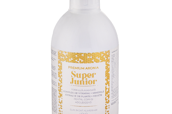 Premium Aronia Super Junior conține un mix remarcabil de vitamine (C, D, K2, E, B, A), minerale (Magneziu, Fier, Seleniu, Zinc, Cupru, Iod), plante (Turmeric, Echinacea Purpurea, Flori de arbore de pagoda japoneză), suc de struguri albi și extracte din 12 fructe. Împreună, au beneficii dovedite pentru dezvoltarea și întărirea oaselor, dinților, mușchilor și sistemului imunitar. Descoperă o formulă unică și avansată care asigură creșterea și dezvoltarea sănătoasă a juniorilor cu vârsta între 4-18 ani.