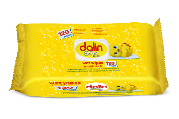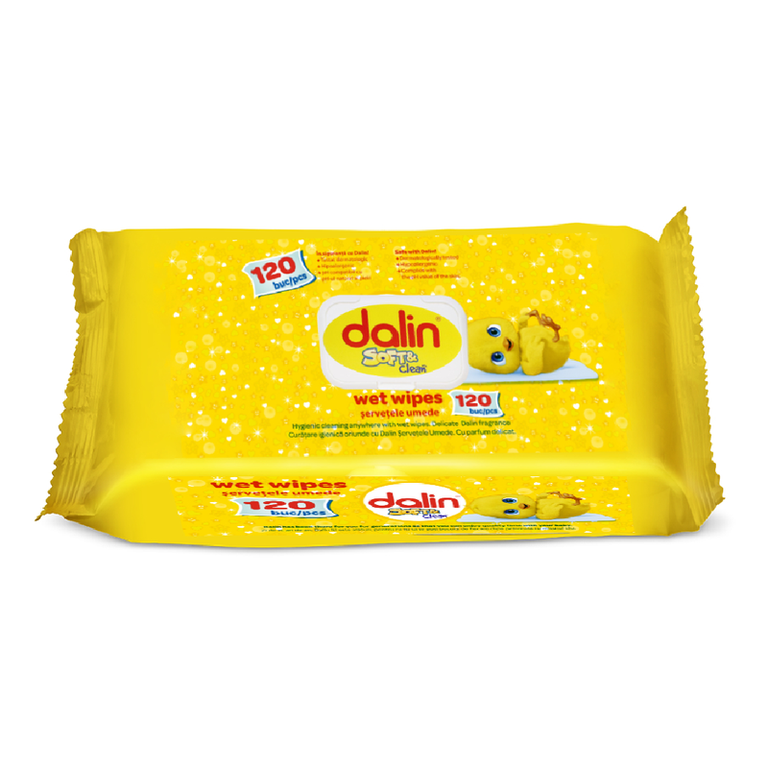 Servetelele umede delicate Dalin cu textura moale si rezistenta, oferta prospetime, confort si garantia igienei oriunde v-ati afla, mentinand totodata pH-ul natural al pielii. Curatare perfecta atat pentru zona scutecului, cat si pentru fata si manute.