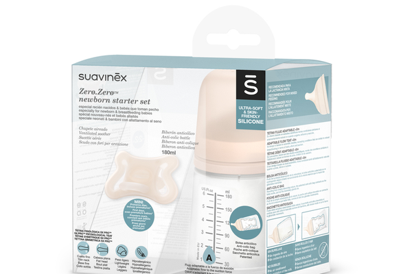 Produsele din set sunt fabricate fără BPA, testate clinic și concepute pentru a reduce riscul de colici și a oferi confort maxim bebelușului.Setul include:1*biberon anticolici de 180 ml cu tetină cu debit variabil, ideal pentru tranziția între alăptare și hrănirea cu biberonul;1*suzetă Zero.Zero pentru nou-născuți prematuri (0-2 luni), care imită forma sânului mamei.