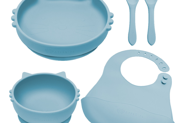 Set pentru diversificare din silicon Kitty, 6 luni+, Aqua Blue, Appekids