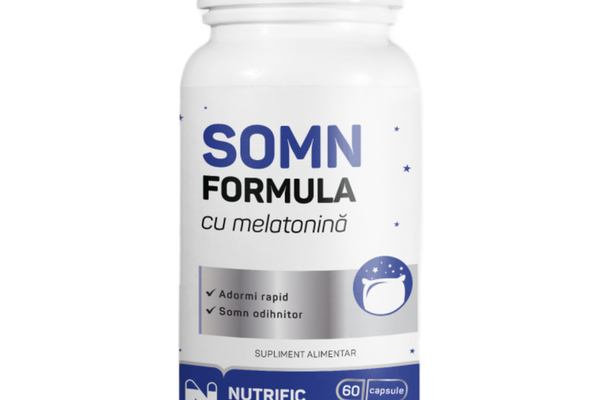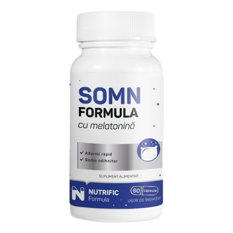 Somn Formula cu melatonina NUTRIFIC este un supliment cu o formula atent studiata care te ajuta intr-un mod natural sa adormi rapid si sa ai un somn profund si odihnitor. Formula noastra vizeaza cauzele principalelor ale tulburari de somn: stresul si lipsa melatoninei. Sinergia ingredientelor sale ajuta la reducerea timpului necesar pentru a adormi si promoveaza un somn mai profund.
